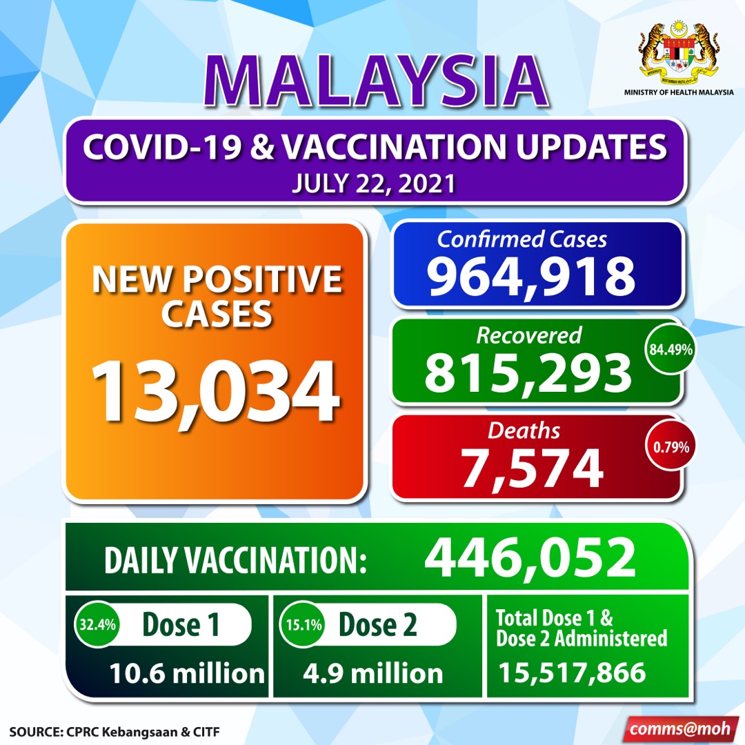 Kkmalaysia On Twitter Covid19 Update For July 22 Malaysia Recorded 13 034 New Positive Cases With 134 Deaths Https T Co 4pr7pwrqx5 Twitter